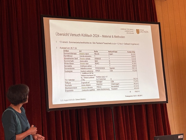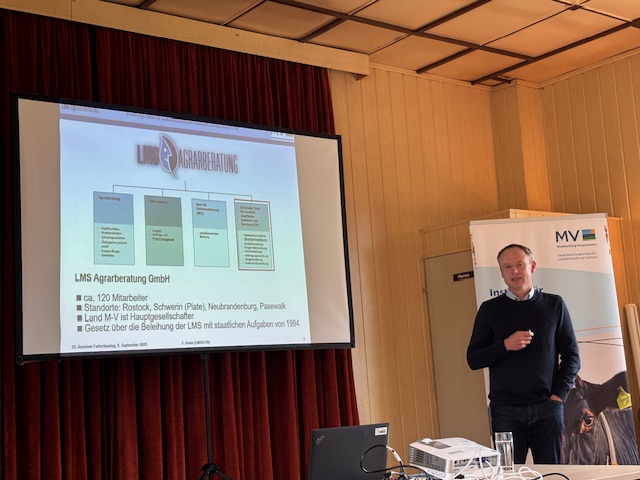 Am Donnerstag, den 09.10.2025, fand traditionell der 25. Raminer Futterbautag statt. Wie jedes Jahr wurde die Veranstaltung von der LFA MV (Landesforschungsanstalt) und der Raminer Agrar GmbH & Co. KG organisiert. Mit Unterstützung des deutsch-polnischen Regionalzentrums wurden ebenfalls polnische Partner eingeladen, um auch den grenzüberschreitenden Erfahrungsaustausch weiter zu fördern. Nach der Begrüßung von Dr. Peter Sanftleben, berichtete Dr. Heidi Jänicke über die 25-jährige Zusammenarbeit, von den Anfängen bis heute. Die anschließenden Fachvorträge konzentrierten sich auf Sommerzwischenfrüchte als Futterreserve und die rechtlichen Vorgaben zur Düngung im Futterbau. Felix Pickert von der Raminer Agrar GmbH & Co. KG berichtete den Gästen über das Raminer Futterbaujahr 2025.