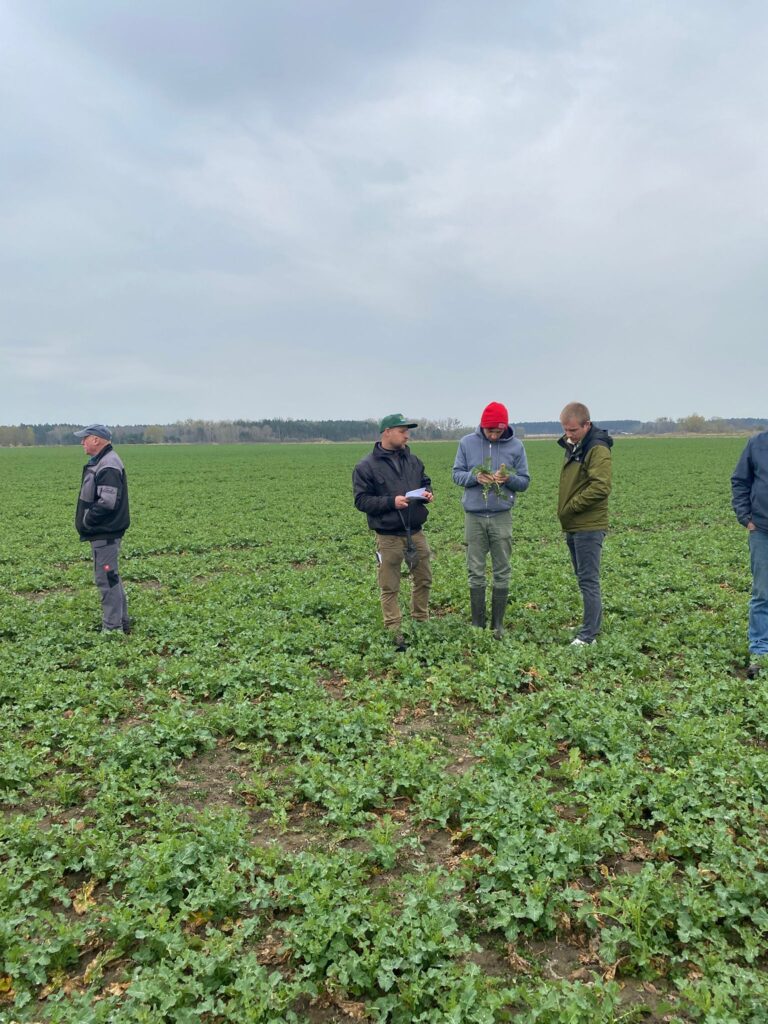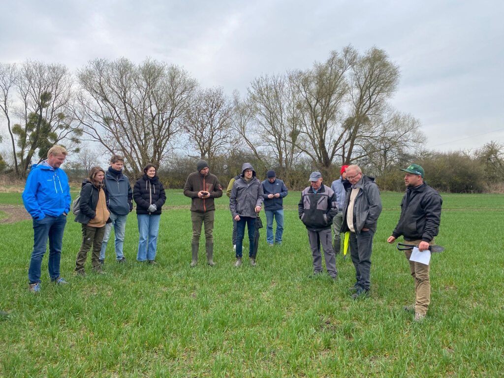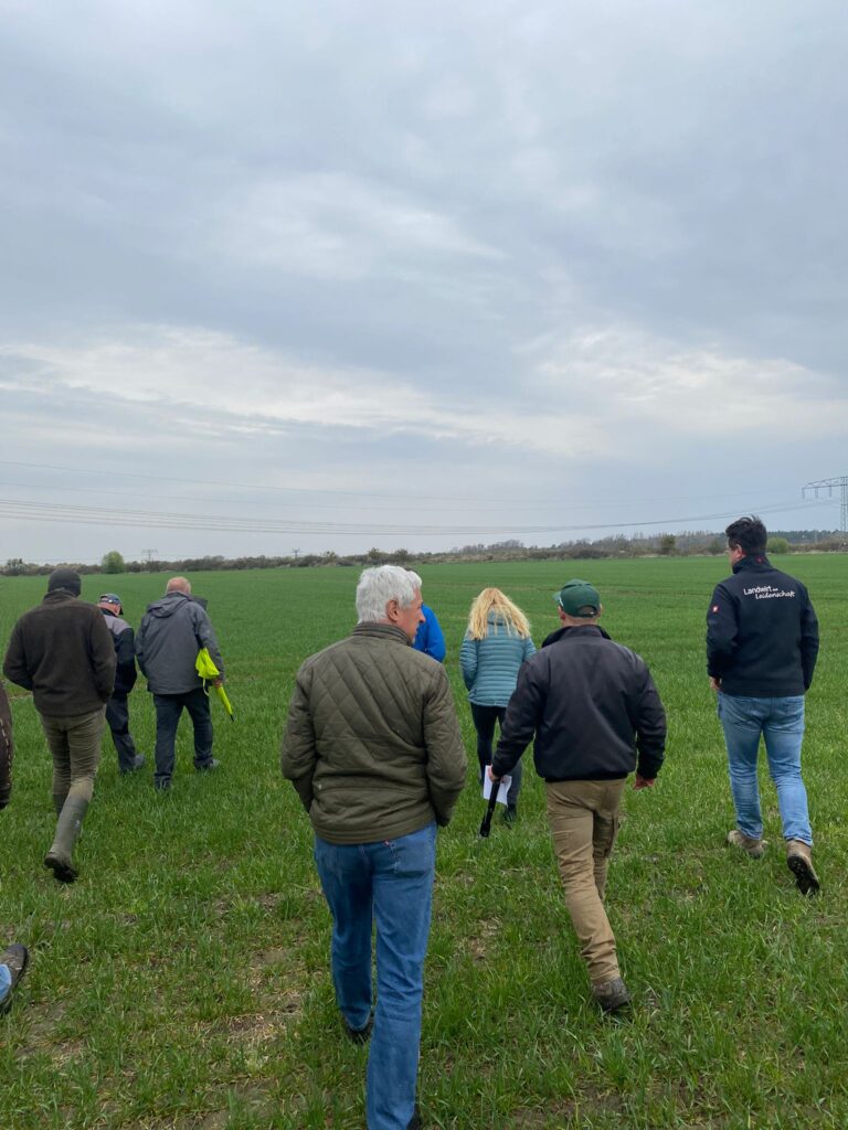 Mit rund 30 Landwirten und Vertretern aus der Landwirtschaftsbranche fand ein intensiver und praxisnaher Austausch direkt auf dem Feld statt. Landwirt Herr Pfalzgraf stellte verschiedene Schläge mit Gerste, Weizen und Raps vor und gab Einblicke in die aktuelle Entwicklung seiner Bestände. Im Mittelpunkt standen Themen wie Düngung, Pflanzenschutzmaßnahmen, Bodenqualität und -bearbeitung sowie aktuelle Pflanzenkrankheiten. Besonders wertvoll war der offene Austausch untereinander, denn die Teilnehmer teilten ihre Erfahrungen aus diesem Jahr und diskutierten Herausforderungen sowie Lösungsansätze.