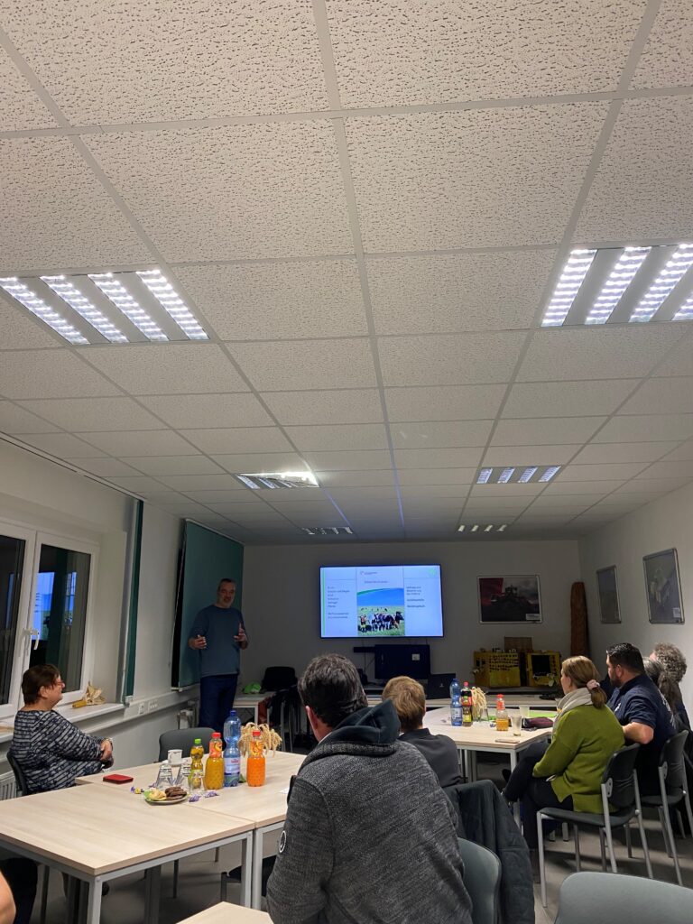 Nach unserem gelungenen Abend mit regionalem Essen im Februar haben wir die Gelegenheit genutzt, zum Jahresende noch einmal in lockerer Runde mit den Nebenerwerbslandwirten zusammenzukommen. Am 27. November 2025 trafen sich 15 Teilnehmende, um sich über aktuelle Themen der Landwirtschaft auszutauschen, Anliegen zu besprechen und den Kontakt untereinander zu pflegen. Nach einer Begrüßung startete der Abend mit einem Fachvortrag zum Thema