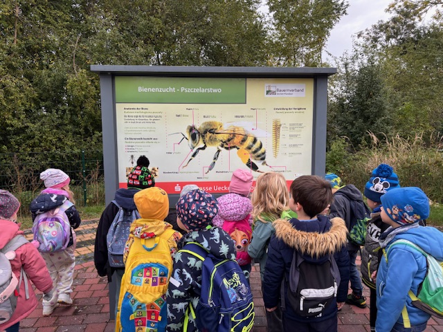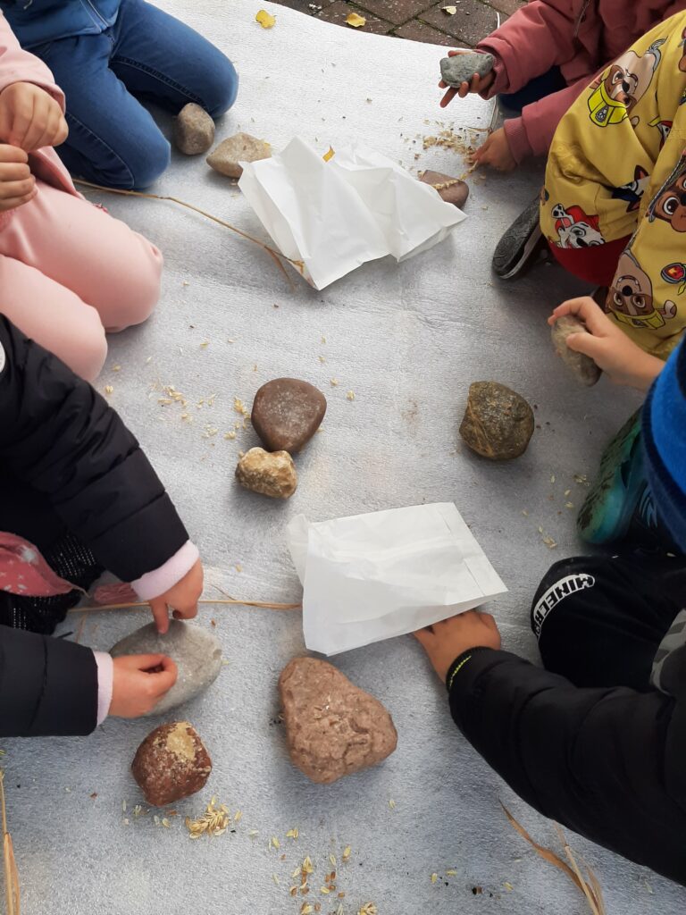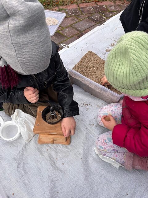 Am 15. Oktober 2025 besuchten 31 Kinder der Kita „Storchennest“ aus Ferdinandshof den Lernort Bauernhof in Pasewalk. Bei schönem Herbstwetter kamen die vier- und fünfjährigen Kinder gut gelaunt und voller Neugier an. Nach einer herzlichen Begrüßung und einem kurzen Rundgang zu den Hochbeeten und Informationstafeln wurden die Kinder in drei Gruppen aufgeteilt und dann ging es richtig los. Es wurde kreativ gebastelt, denn kleine Mäuse enstanden aus Kartoffeln. Beim Getreidemahlen mit Mühlen und Steinen erfuhren die Kinder, wie aus Korn Mehl wird, woraus unser Brot entsteht und wofür Getreide überhaupt verwendet wird. Vom Hochsitz aus konnten sie den Bauernhof überblicken und bekamen Spannendes über Wald und Jagd erzählt.