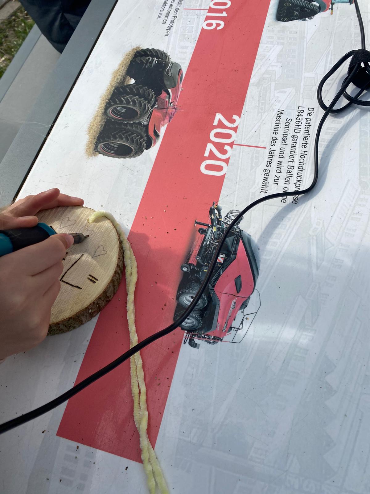Im Anschluss wechselten wir nach drinnen und beschäftigten uns mit dem Thema Geflügel. Besonders das Straußenei sorgte für große Überraschung und wie groß es tatsächlich ist, hätten sie nicht erwartet. Danach wurde es praktisch: Bei einer Schafsbastelaktion konnten die Kinder kreativ werden. Außerdem hatten sie die Möglichkeit, mit Holz zu arbeiten und erste Erfahrungen mit Bohrmaschine und Lötkolben zu sammeln. Zum Abschluss ging es noch einmal gemeinsam auf den Hochstand. Insgesamt war es ein rundum gelungener und abwechslungsreicher Nachmittag, der den Kindern viele neue Eindrücke aus der Landwirtschaft vermittelt hat.