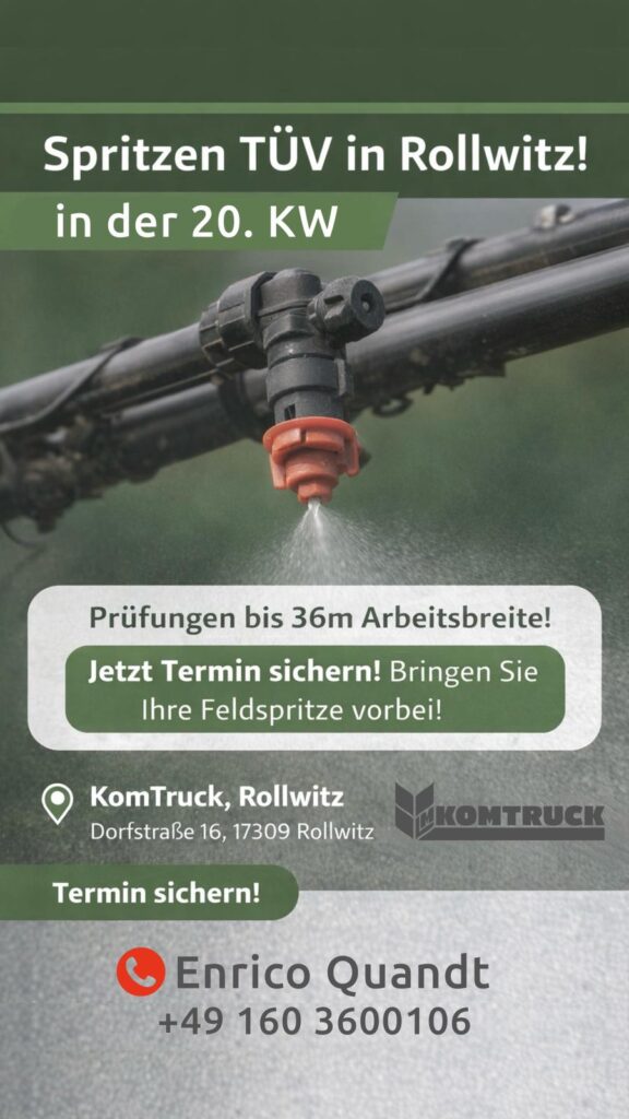KomTruck führt vor Ort in Rollwitz die Spritzenprüfung durch, zu der Sie recht herzlich eingeladen sind.